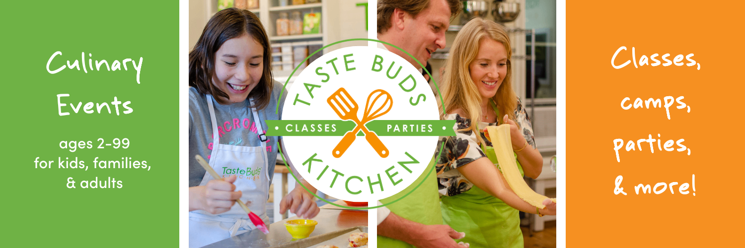 Taste Buds Kitchen is a culinary entertainment destination offering cooking classes, summer camps, birthday parties and corporate events for ages 2-99 in our beautiful Kitchen Studio. We make everything from scratch – from pasta, to sushi, to everyone’s favorite cupcakes!