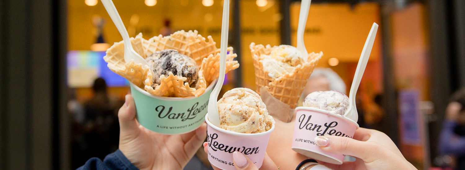 Van Leeuwen Ice Cream was started out of a yellow scoop truck on the streets of NYC in 2008 with a mission to make good ice cream from good ingredients that makes you feel good. What could be happier than that magic combination of milk, cream, eggs, and cane sugar (or coconuts, cashews and oats for our vegan friends)? Whether it’s scoops of good ice cream, a sundae, milkshake, or an ice cream sandwich, if you have a mouth, we have a flavor.